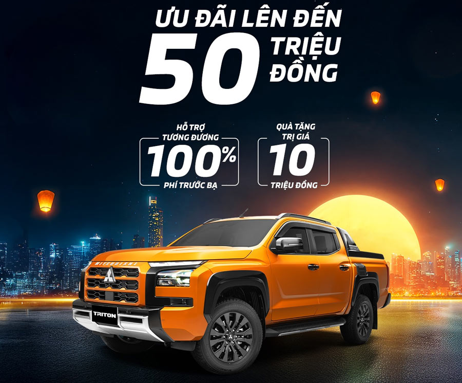 - All New Triton: Dòng bán tải thế hệ mới của Mitsubishi dành cho những ai yêu thích khám phá. Hỗ trợ 100% LPTB cho bản GLX và 50% LPTB cho các phiên bản khác, kèm theo quà tặng trị giá 10 triệu đồng.