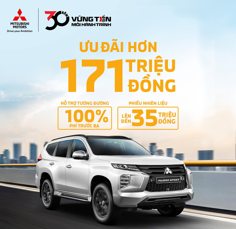 Pajero Sport và Attrage cũng nằm trong chương trình khuyến mãi với mức hỗ trợ 100% lệ phí trước bạ, kèm theo phiếu nhiên liệu trị giá lên tới 35 triệu đồng.