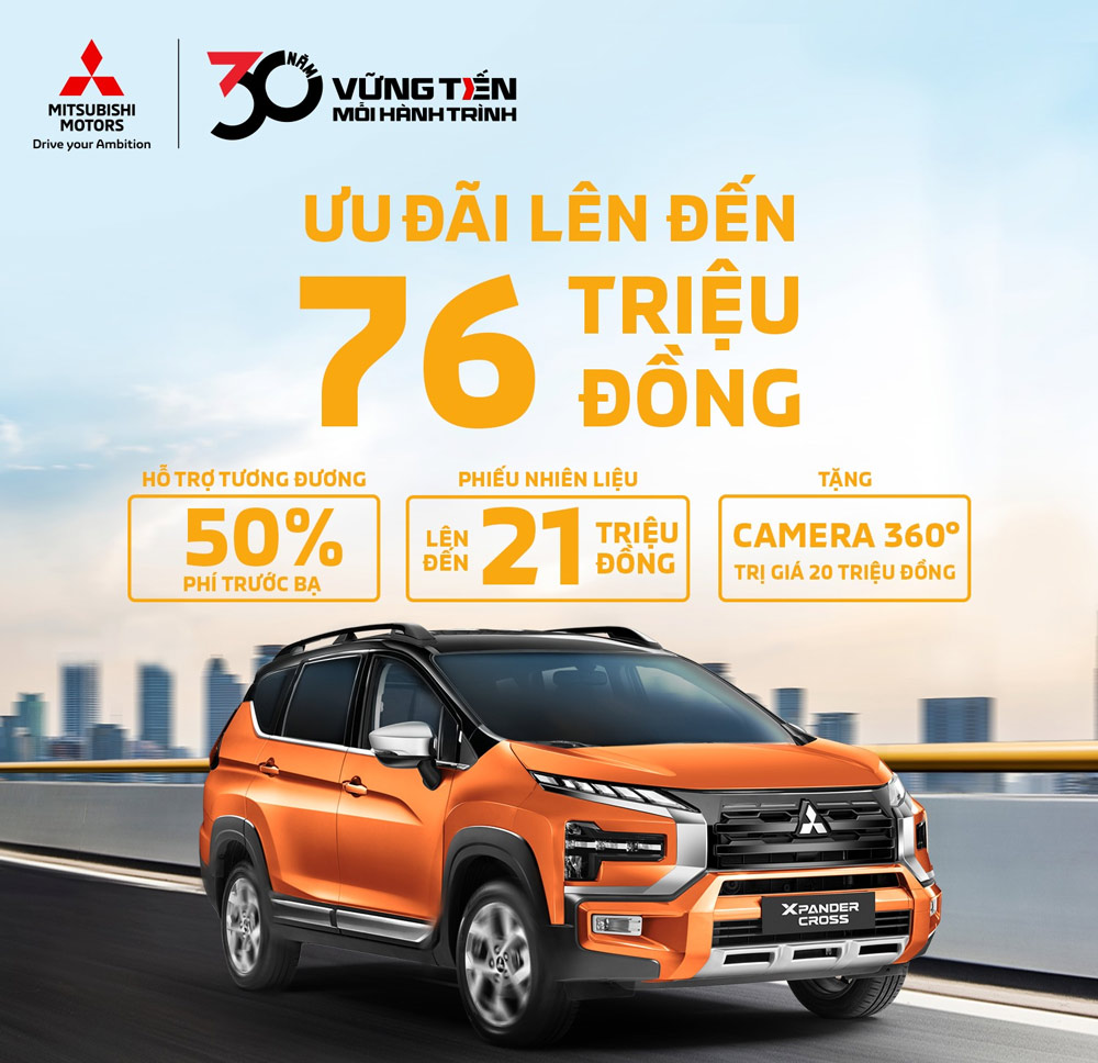 Khách hàng mua các dòng xe Xpander và Xpander Cross trong tháng này cũng sẽ được hỗ trợ 50% phí trước bạ, đồng thời nhận thêm phiếu nhiên liệu có giá trị tối đa 21 triệu đồng. Bên cạnh đó, tùy thuộc vào phiên bản, khách hàng có thể lựa chọn giữa camera toàn cảnh 360 độ hoặc camera lùi như một phần quà tặng thêm.
